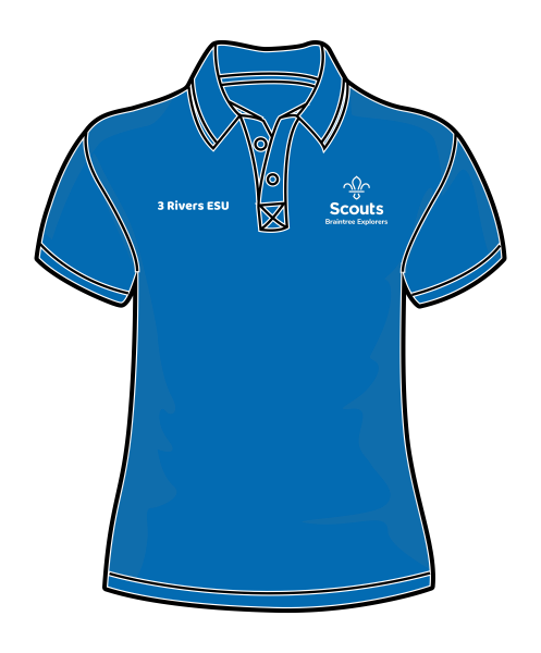 3 Rivers ESU polo shirt with Braintree Explorers logo embroidered on the left breast, "3 Rivers ESU" printed in white on the right breast.